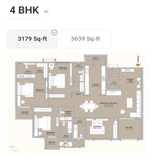 | 4 BHK | 3179-3639 sq ft | 4.29* Cr Onwards |