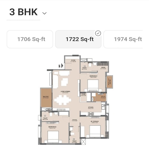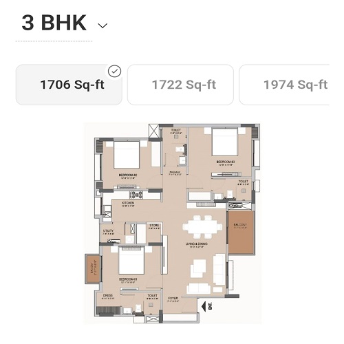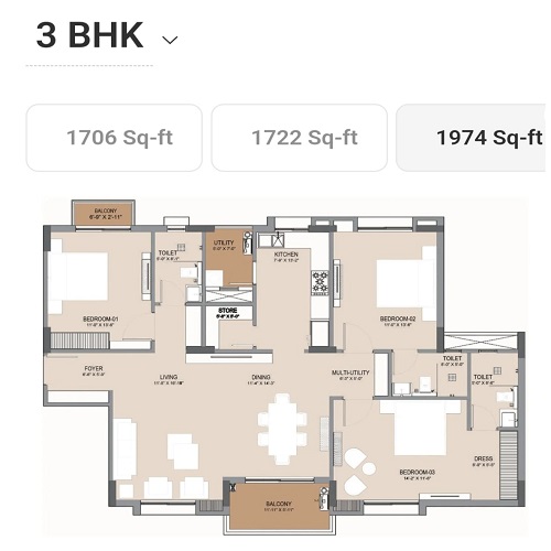 | 3 BHK | 1706-2128 Sq-ft | 99.39 * lakh Onwards |