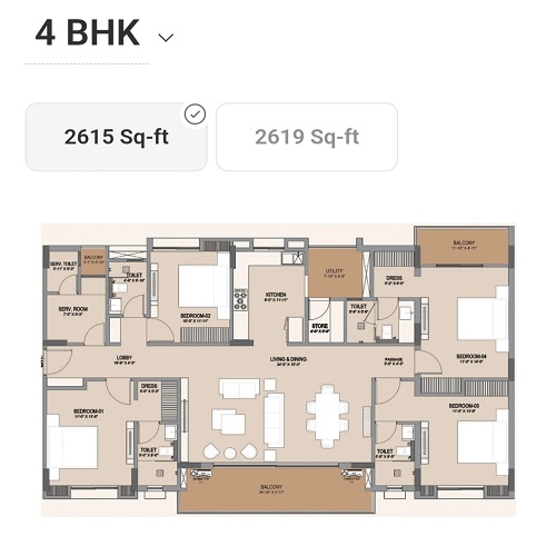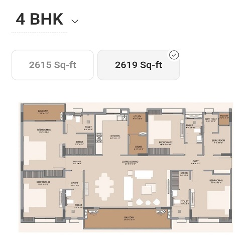 | 4 BHK | 2615 sq ft | 1.44* Cr Onwards |