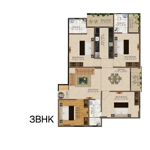 | 3 BHK | 1840-2075 Sq-ft | 1.47 Cr Onwards |